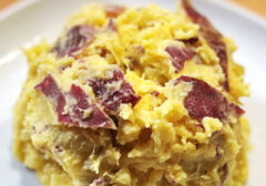 🍠🍍おイモとパインのスイーツサラダ (開発者: 間瀬志穂奈さん) ホクホクで優しい甘さのさつまいもと、ジューシーなパインの組み合わせが新感覚!フルーティでさっぱりとした後味が最高で、食後の軽いデザートタイムにもぴったりなんです🤤💕
